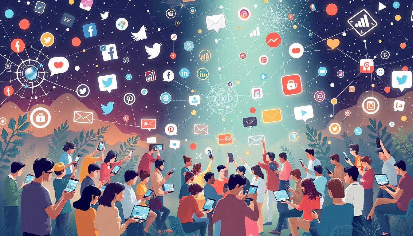 In today’s digital world, linking social media with your marketing plan is key for growth. With over 4 billion active users on social media, businesses reach a huge audience. This connection helps in a unified approach to getting new customers and boosts marketing efforts.